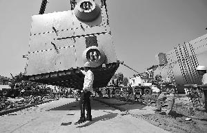 “上卡子!”制造商雙良鍋爐的項目經理王明衛(wèi)一聲令下,幾位工作人員立即拿起氣割槍,開始在鍋爐的四個底角鉆孔。“鍋爐重70噸,必須得焊上U形的卡子,再吊鋼繩,確保安全。”