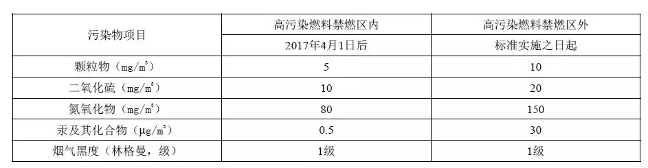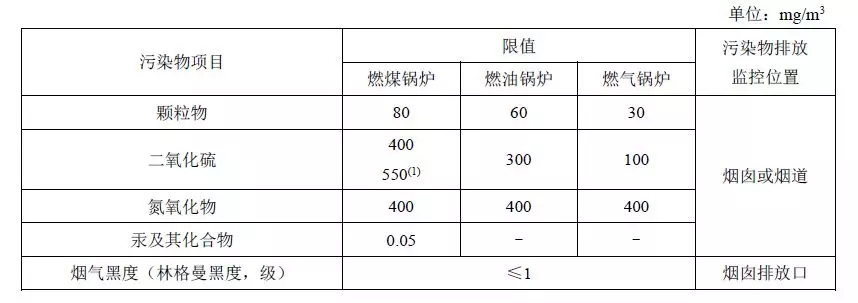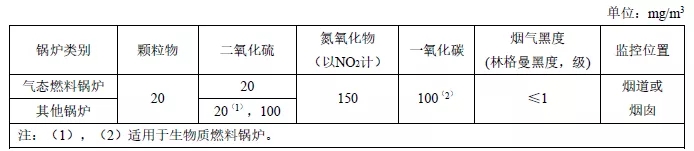 注:自2014年7月1日起新建鍋爐執(zhí)行表2的排放限值。