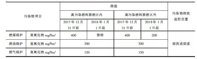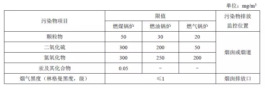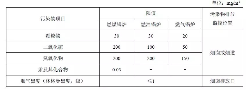 表3 重點地區(qū)鍋爐大氣污染物特別排放限值(GB13271-2014)