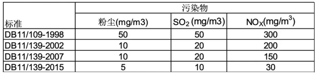 表6 北京市新建燃氣鍋爐大氣污染物排放標準變化歷程