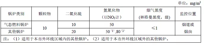 表10 上海市在用鍋爐大氣污染物排放限值(第二階段2020/10/1起)