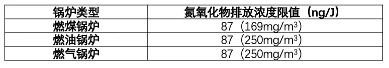 我國鍋爐氮氧化物的排放標準