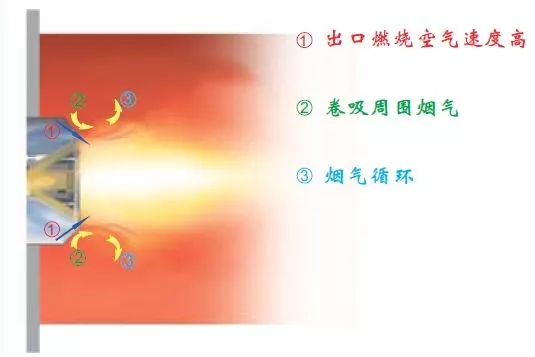 分級(jí)燃燒技術(shù)雖然可以一定程度降低氮氧化物的產(chǎn)生,但是很多燃燒器在實(shí)際使用中沒有完全實(shí)現(xiàn)助燃空氣和燃?xì)獾某浞只旌?,爐膛內(nèi)存在局部高溫區(qū),其溫度高于產(chǎn)生熱力型NOx的溫度,造成NOx濃度超標(biāo)。另一方面,有可能出現(xiàn)燃料和空氣的混合流動(dòng)不佳,造成一氧化碳超標(biāo),局部積碳等不完全燃燒的現(xiàn)象。為了降低反應(yīng)溫度,需要盡可能使火焰分散,擴(kuò)大火焰形狀,也就是說需要結(jié)合爐膛配合使用,而大多是情況是爐膛體積有限,為了避免火焰相對(duì)爐膛過大,通常會(huì)降低燃燒器的輸出功率,這樣可以降低NOx濃度及保證充分燃燒,但是缺點(diǎn)是鍋爐的功率下降了,而且有煙氣冷凝的風(fēng)險(xiǎn)。